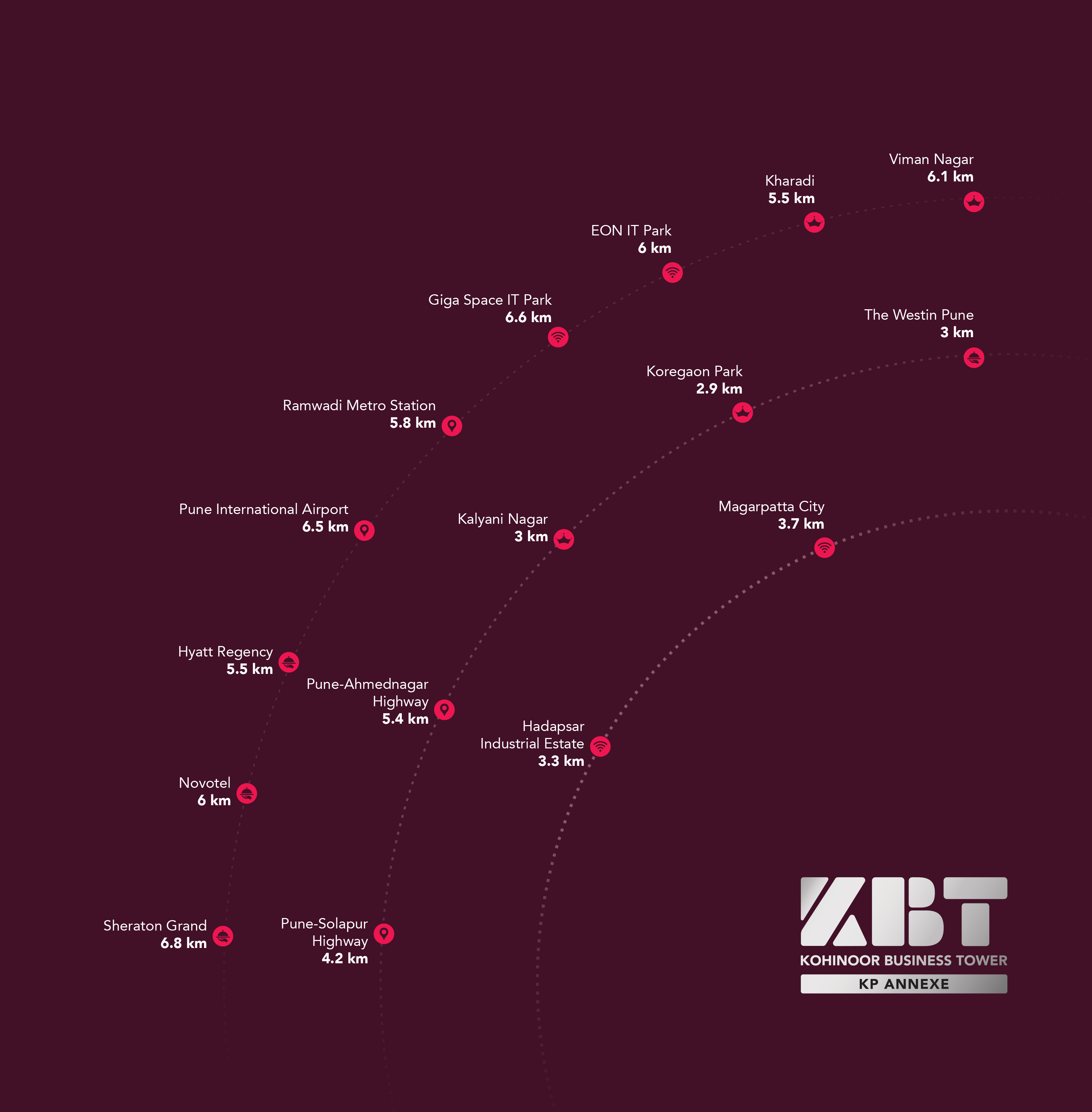 Kohinoor World Tower offers ready-to-move-in, A-Grade office spaces in Koregaon Park Annexe with modern smart-office infrastructure and exceptional connectivity. It’s the ideal choice for enterprises and SMEs seeking prestige, performance, and sustainability in one strategic address.